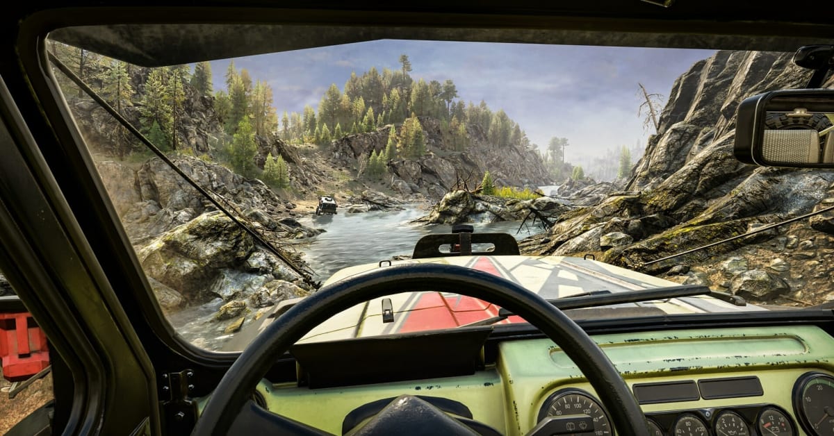 Driving is as difficult and challenging as you know and love, if you’re already a fan of the series. The different surfaces all pose their own challenges, which you need to react to by adapting the tire pressure, using the winches on your car to pull yourself in specific directions by anchoring your car to a tree, rocks, or an anchor, or skilfully weaving along slopes. Again, it’s not about being fast. It can take many minutes to just advance a few meters on very rough terrain or elevation changes, but it feels very rewarding to beat nature with your own ingenuity.