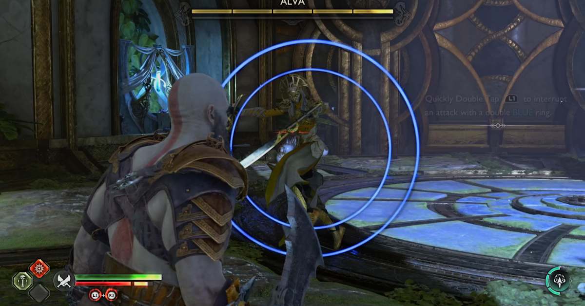 - Whenever you see a blue ring around Alva, double tap L1 and you’ll interrupt whatever the boss is trying to do.