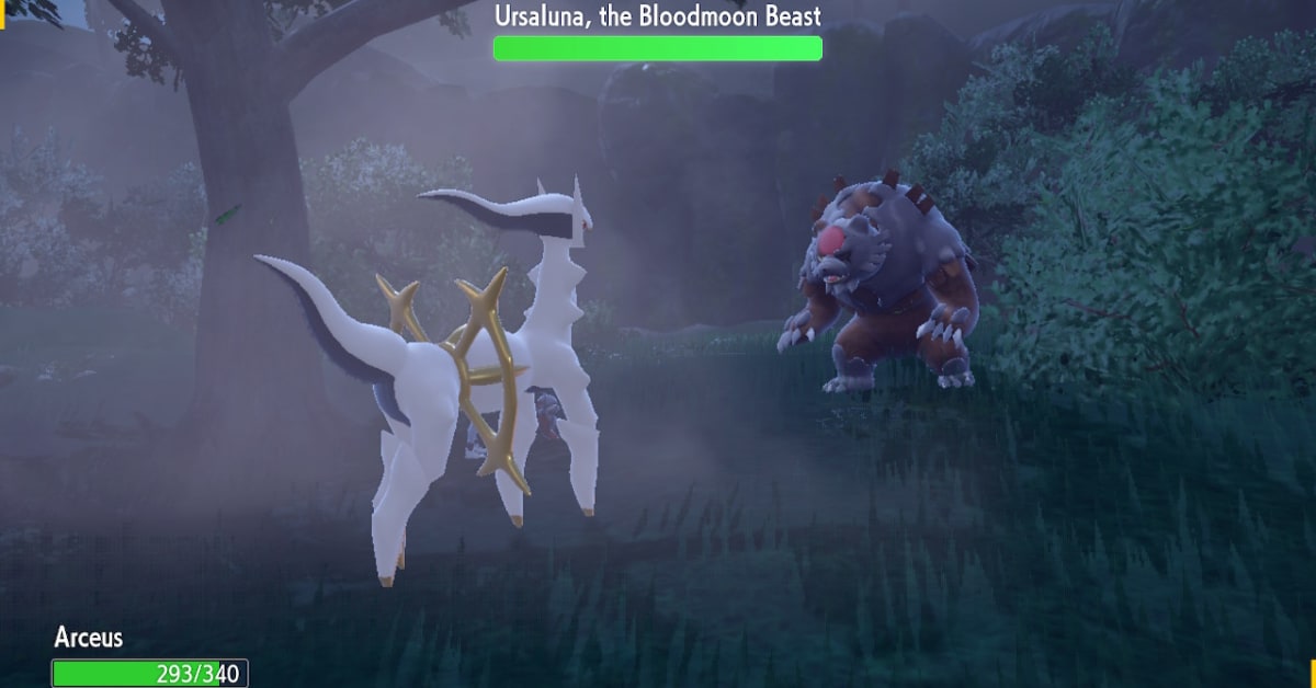 Before you can catch Ursaluna you’ll have to battle it. It’ll have an extended health bar, much like the Titan Pokémon from the main game. You won’t be able to catch it during this battle, so don’t worry about accidentally KOing it. Once you’ve reduced its HP to zero, you’ll be prompted to throw a Pokéball, and you can catch Ursaluna with a 100% catch rate.