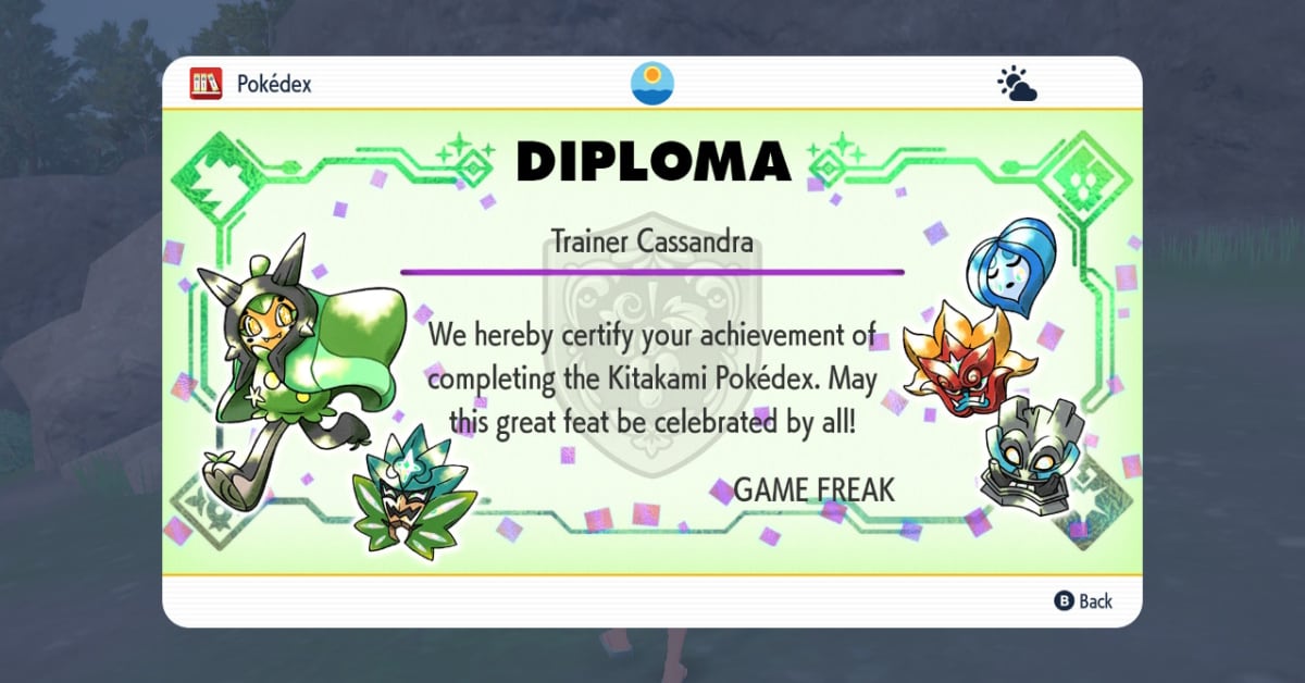 As we said before, the first requirement is completing the Pokédex, something that requires beating the DLC’s main story as well as Perrin’s side quest to catch Bloodmoon Ursaluna in Scarlet & Violet. Once you’ve filled it up, head over to Jacq, who will be standing at the far end of the bridge on the east side of Mossui Town – the same place where he gives you the Scarlet & Violet Sinnoh starters.